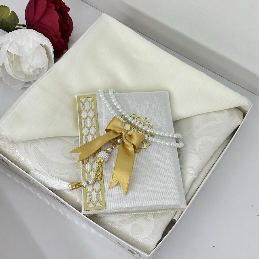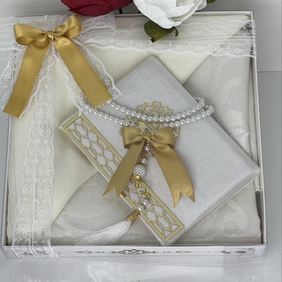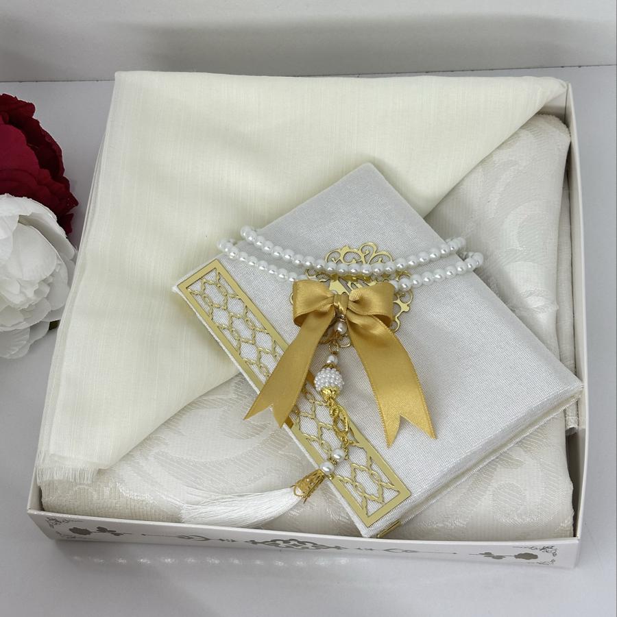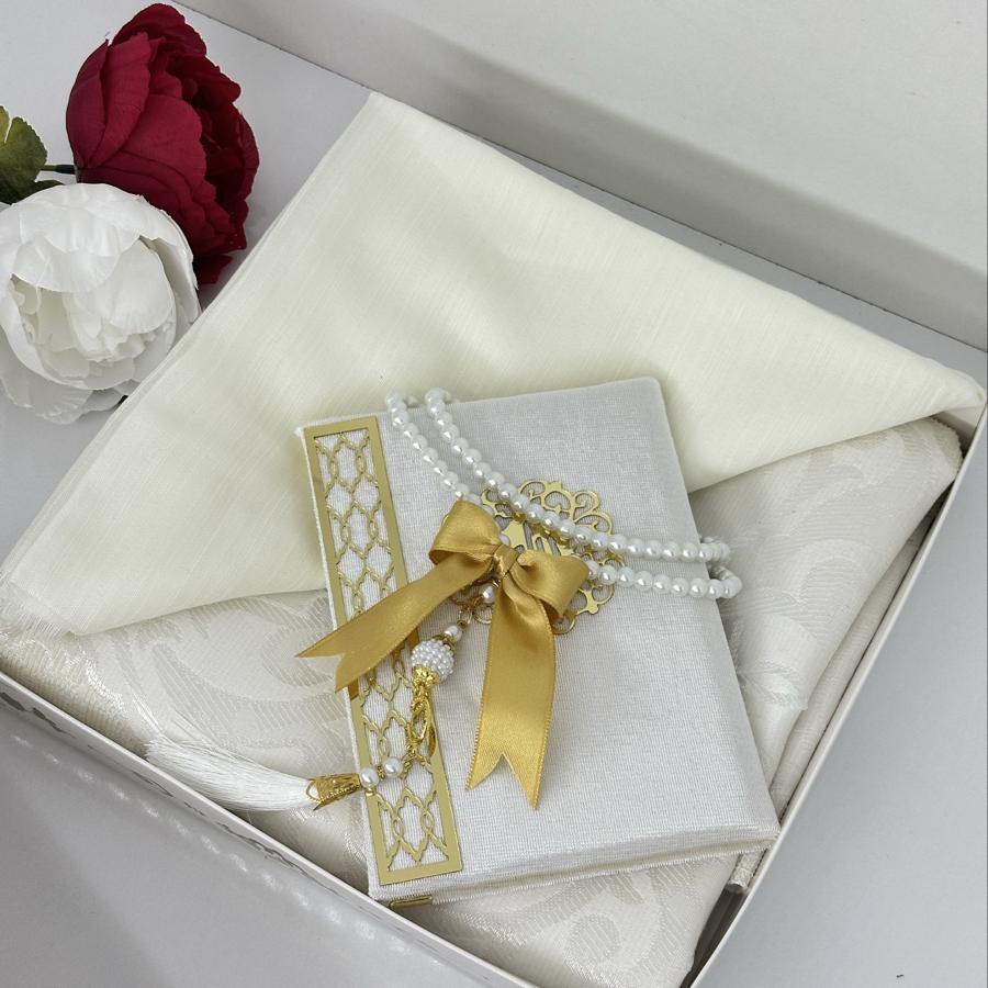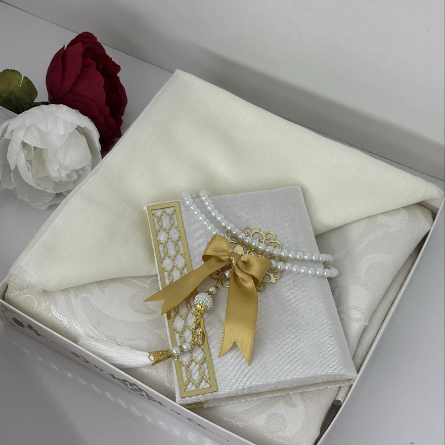 Ürün Açıklaması: Şık ve anlamlı bir hediye arayanlar için ideal! Set içeriği: • 1 adet desenli seccade • 1 adet Yasin-i Şerif (gold detaylı) • 1 adet pamuklu fılamlı başörtü • 1 adet 99’lu inci tesbih Görselde görüldüğü şekilde özenle hazırlanıp gönderilir. Çeyizlik ve hediyelik için mükemmel bir seçim.