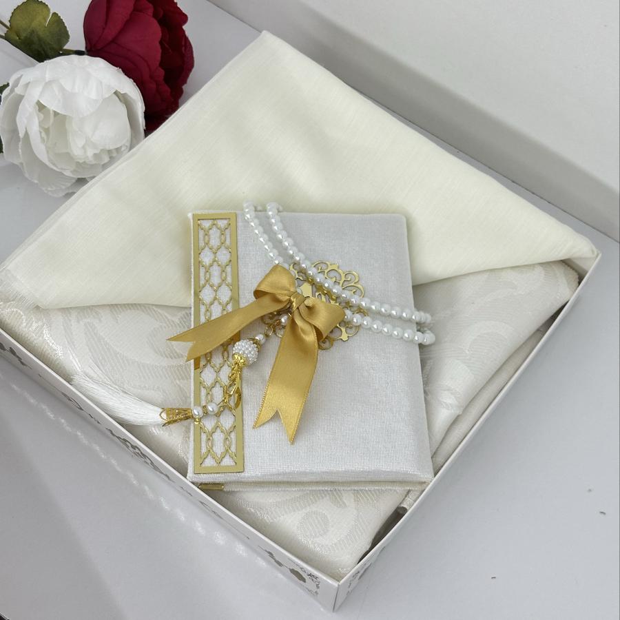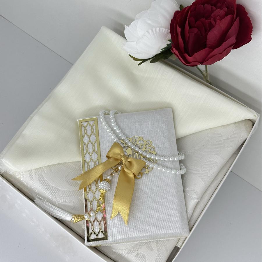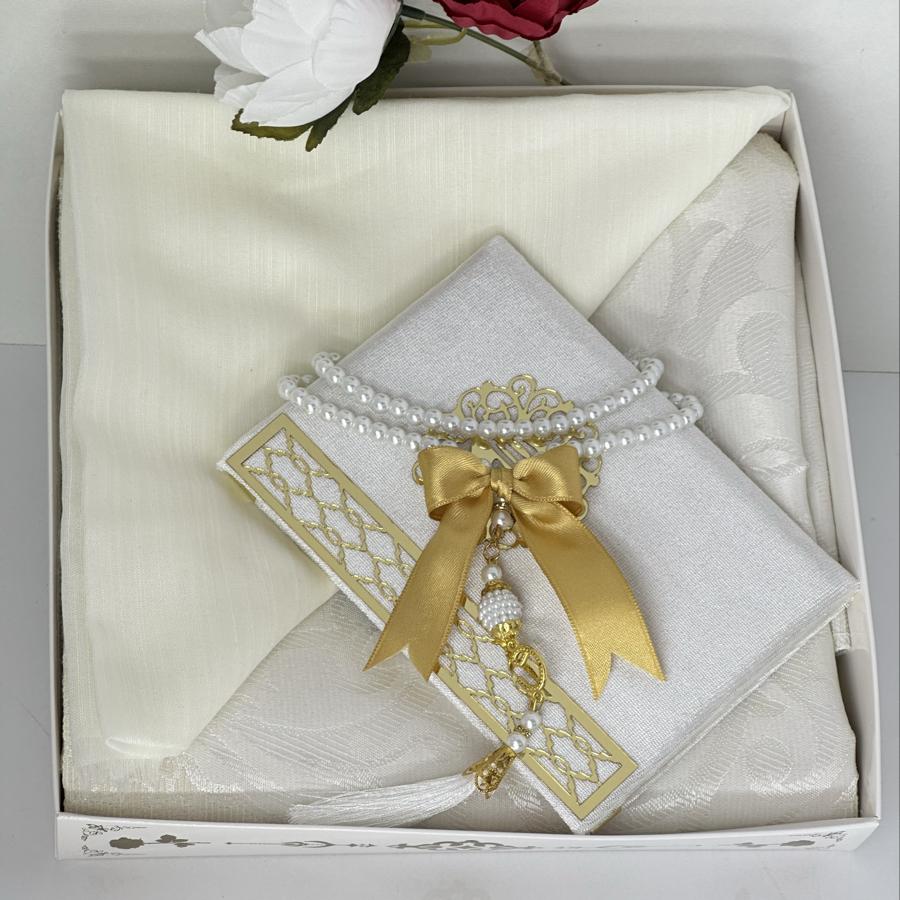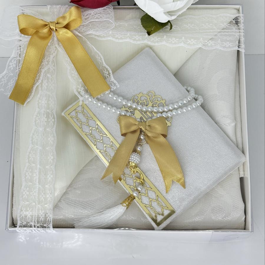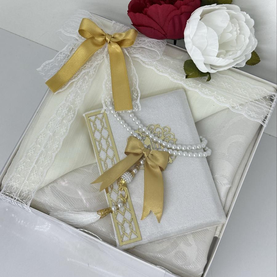 Ürün Açıklaması: Şık ve anlamlı bir hediye arayanlar için ideal! Set içeriği: • 1 adet desenli seccade • 1 adet Yasin-i Şerif (gold detaylı) • 1 adet pamuklu fılamlı başörtü • 1 adet 99’lu inci tesbih Görselde görüldüğü şekilde özenle hazırlanıp gönderilir. Çeyizlik ve hediyelik için mükemmel bir seçim.