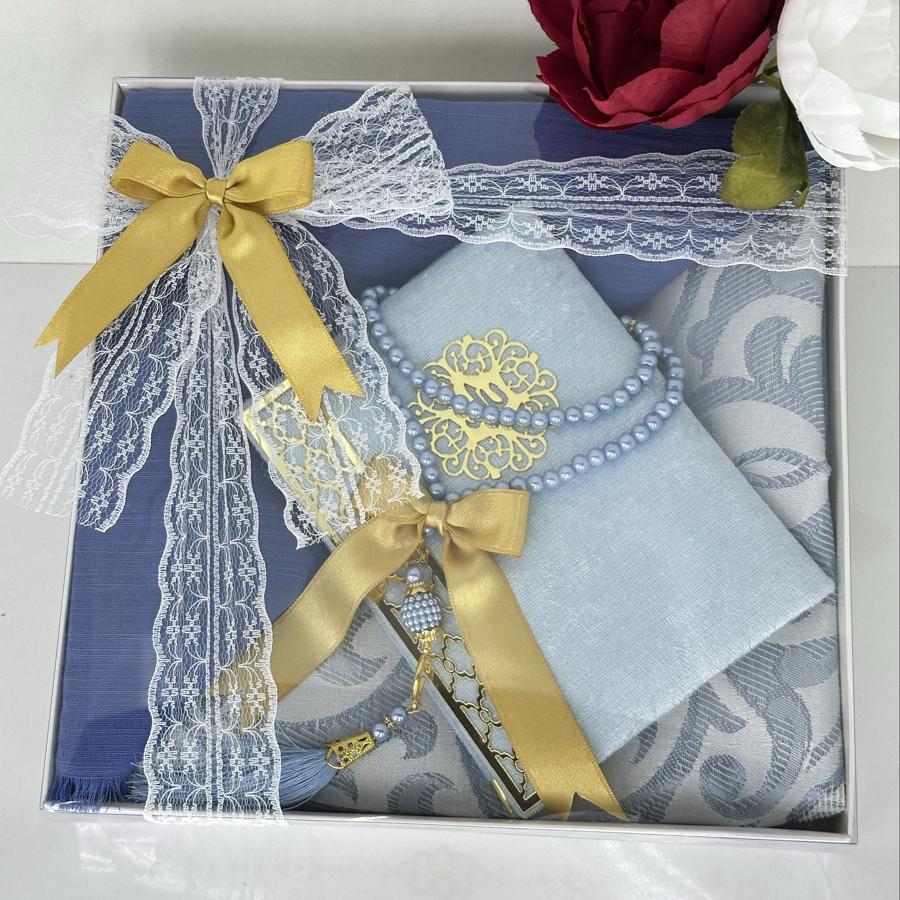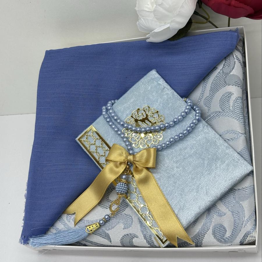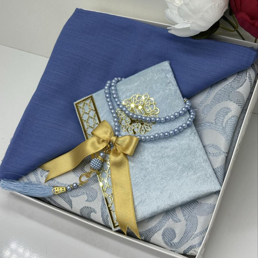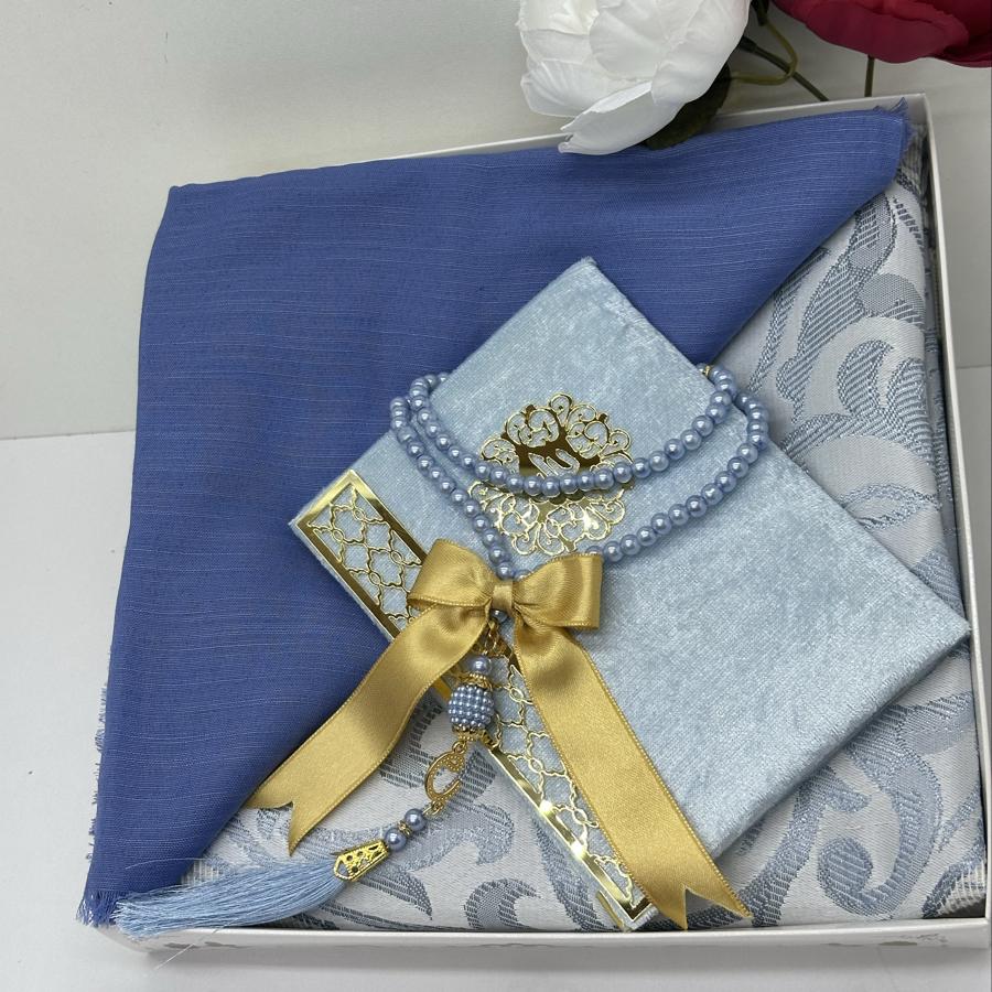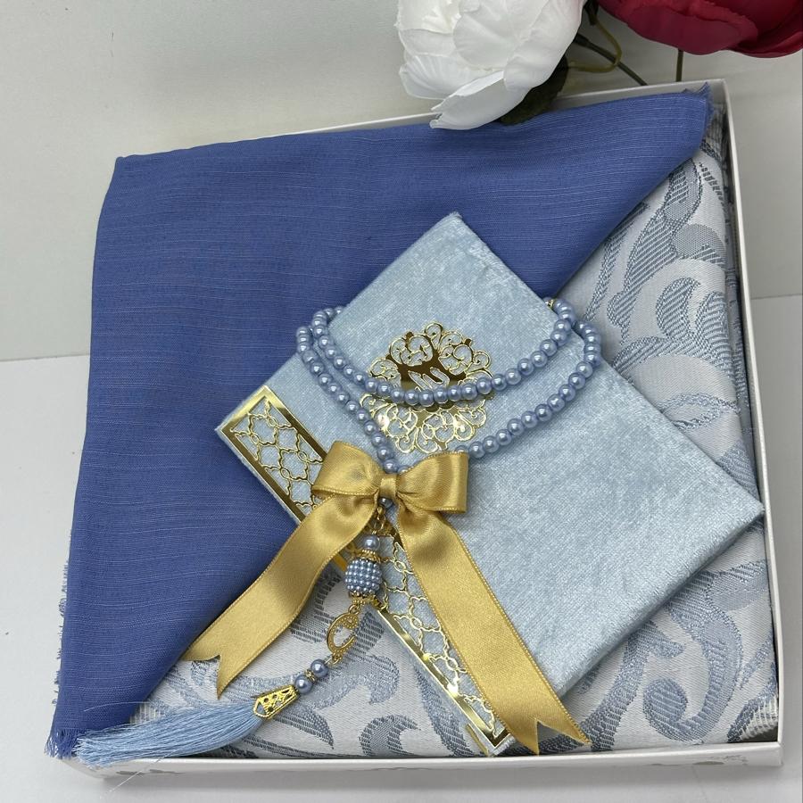 Ürün Açıklaması: Şık ve anlamlı bir hediye arayanlar için ideal! Set içeriği: • 1 adet desenli seccade • 1 adet Yasin-i Şerif (gold detaylı) • 1 adet pamuklu fılamlı başörtü • 1 adet 99’lu inci tesbih Görselde görüldüğü şekilde özenle hazırlanıp gönderilir. Çeyizlik ve hediyelik için mükemmel bir seçim.