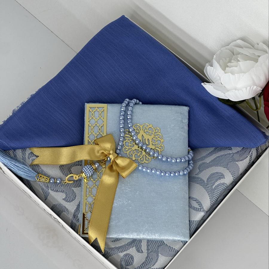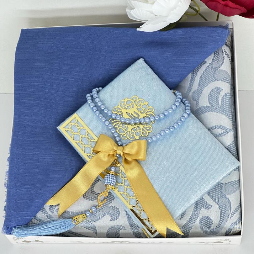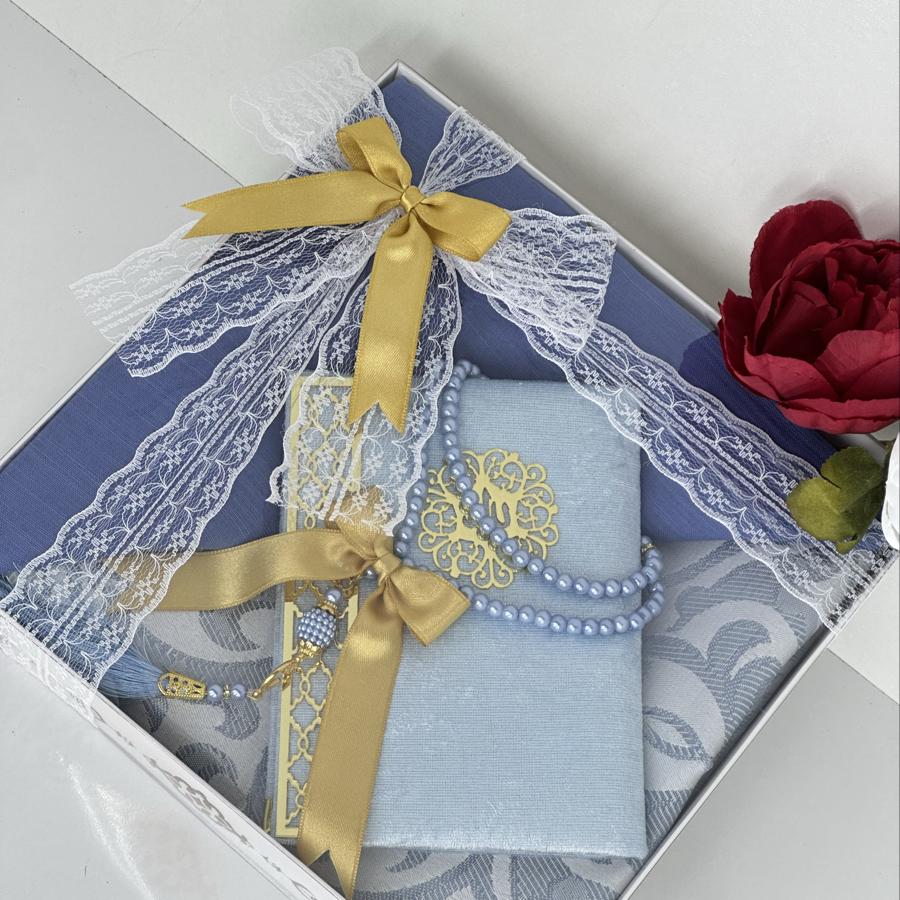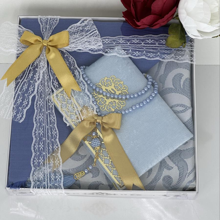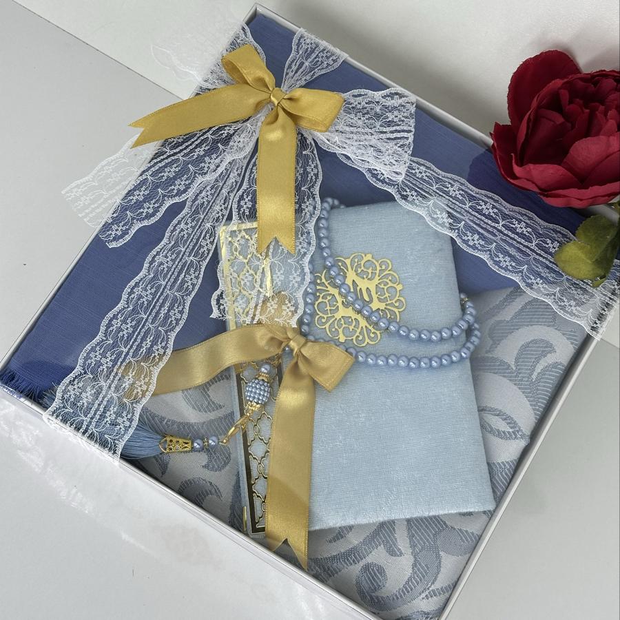 Ürün Açıklaması: Şık ve anlamlı bir hediye arayanlar için ideal! Set içeriği: • 1 adet desenli seccade • 1 adet Yasin-i Şerif (gold detaylı) • 1 adet pamuklu fılamlı başörtü • 1 adet 99’lu inci tesbih Görselde görüldüğü şekilde özenle hazırlanıp gönderilir. Çeyizlik ve hediyelik için mükemmel bir seçim.