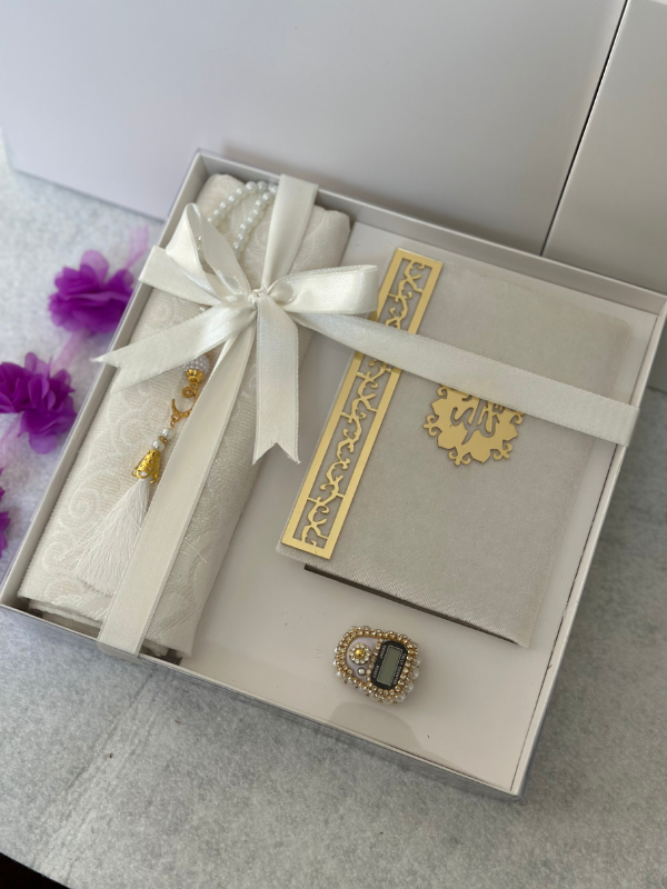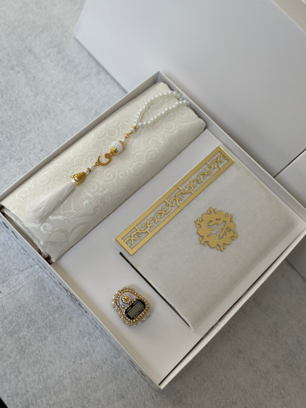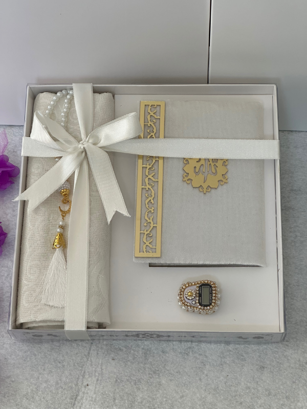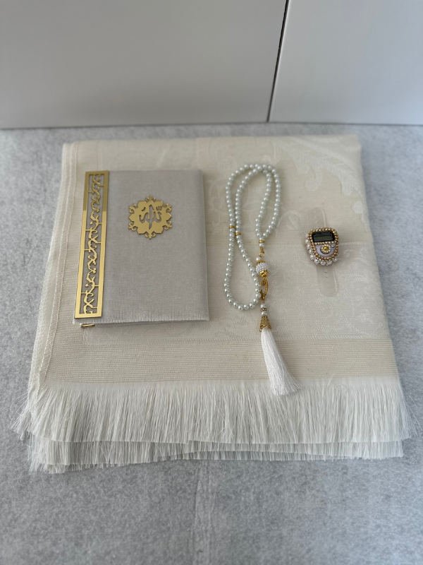 Çırağan Serisi ipek tafta Seccade Tesbih taşlı zikirmatik Hediye Seti ürün görselde görüldüğü gibi gelir