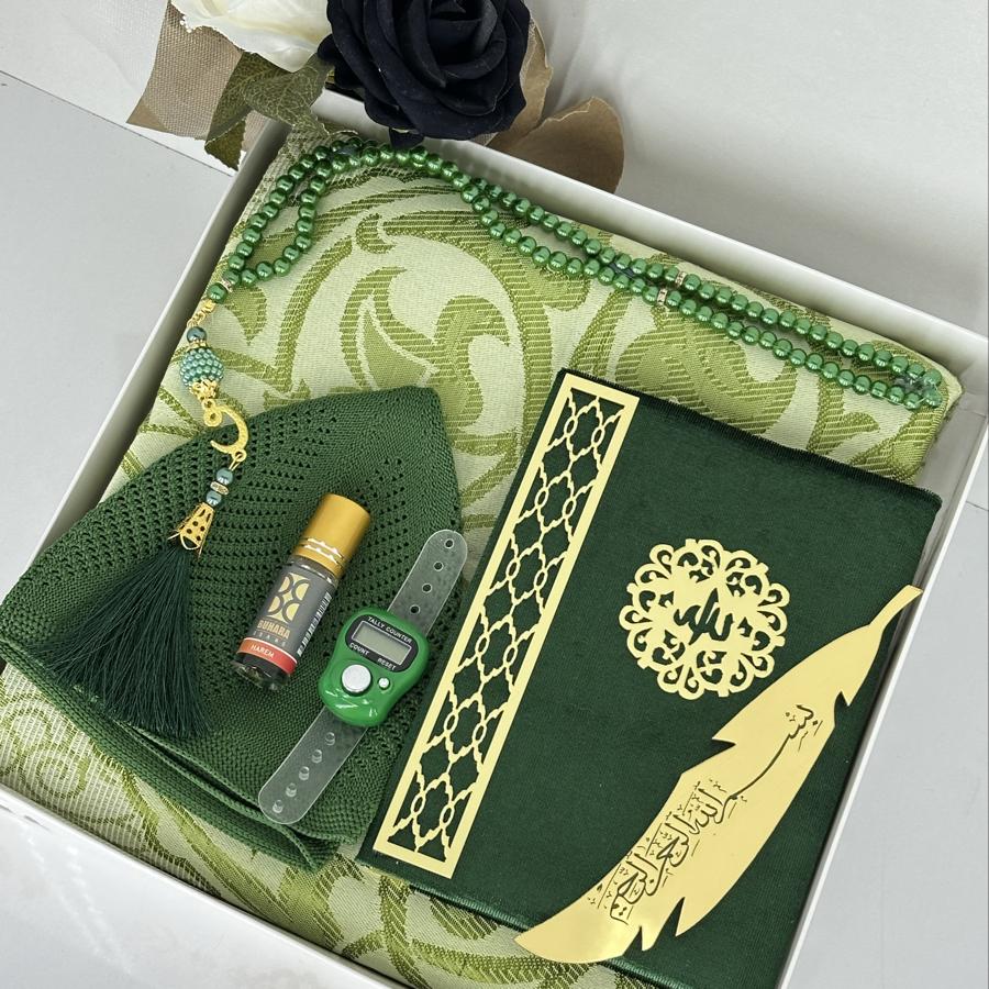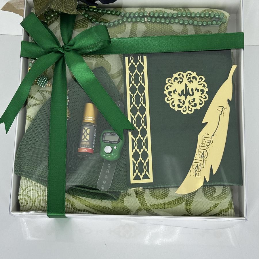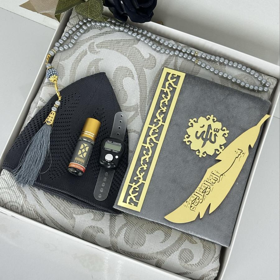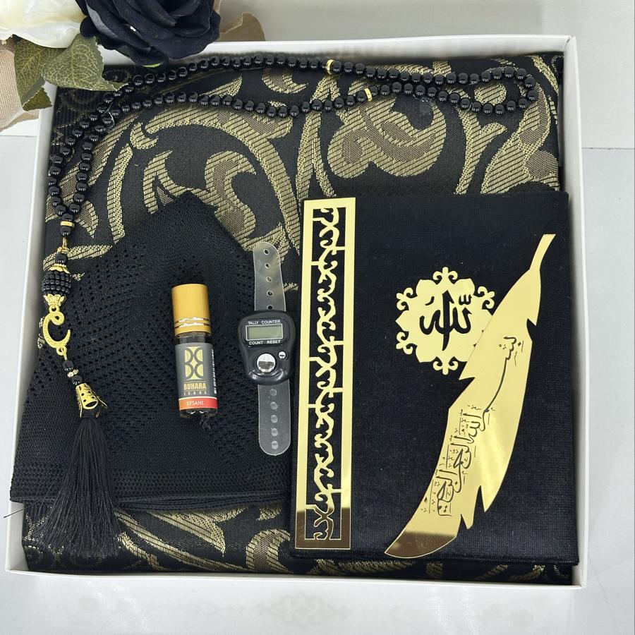 Ürün Açıklaması: Özel günlerde anlamlı bir hediye arayanlar için şık ve zarif bir seccade seti! Bu erkeklere özel hediyelik set, kaliteli malzemeler ve estetik detaylarla hazırlanmıştır. Hem ibadet hem de zarif bir sunum için idealdir. Set İçeriği: ✔️ 1 adet desenli tafta seccade ✔️ 1 adet kadife kaplı Yasin-i Şerif ✔️ 1 adet pamuklu namaz takkesi ✔️ 1 adet dijital zikirmatik ✔️ 1 adet kalıcı esans koku ✔️ 1 adet siyah inci görünümlü 99’luk tesbih ✔️ 1 adet altın yaldızlı kitap ayraç Bayram, mevlid, kandil veya özel günlerde anlamlı bir armağan arayanlar için şık kutusunda teslim edilir. Siparişinizi hemen verin, sevdiklerinize dualarla ulaşsın