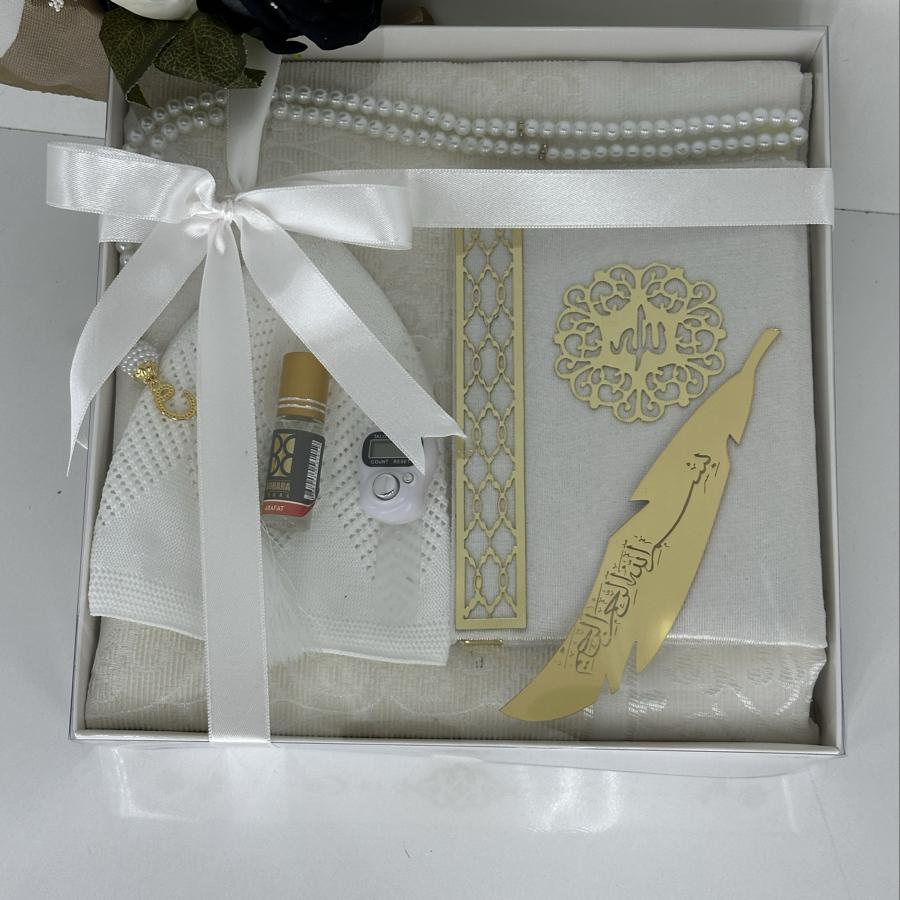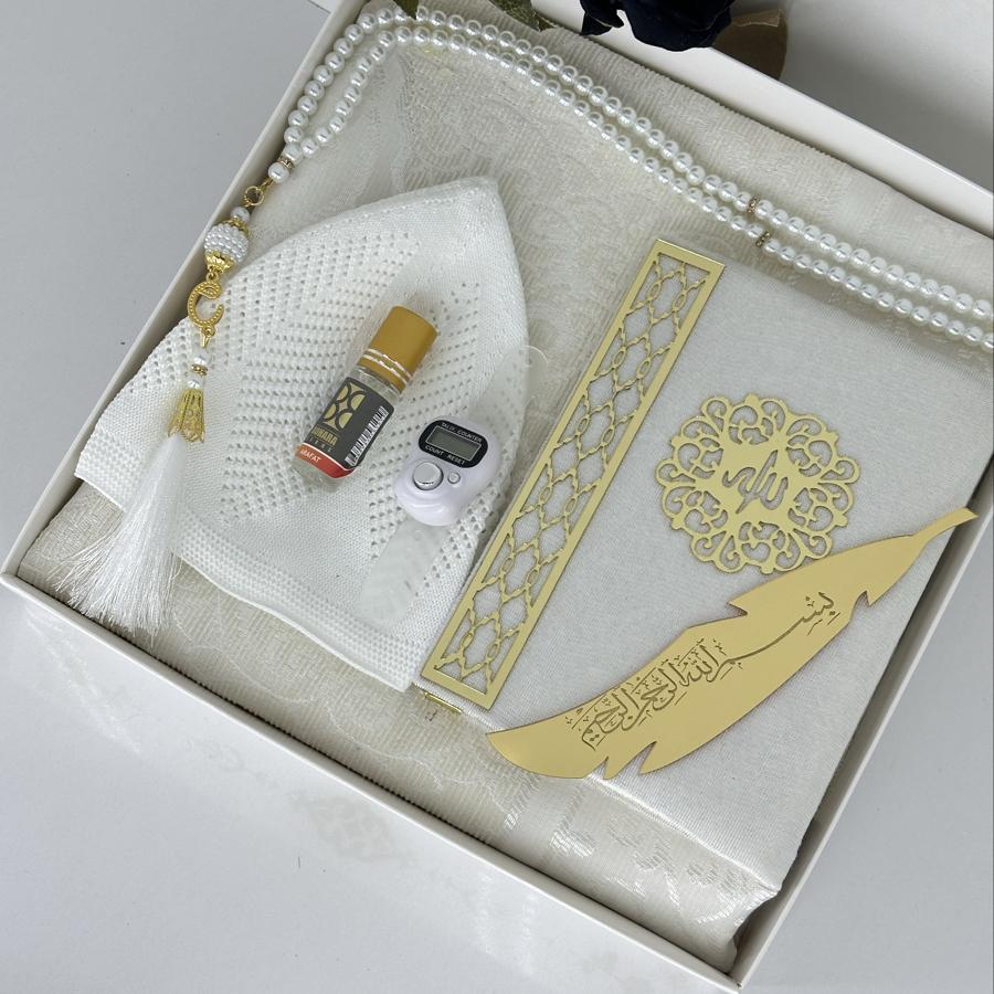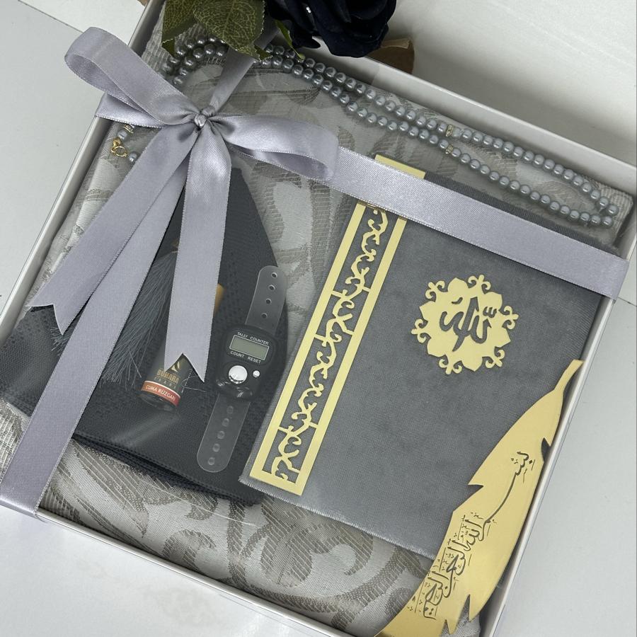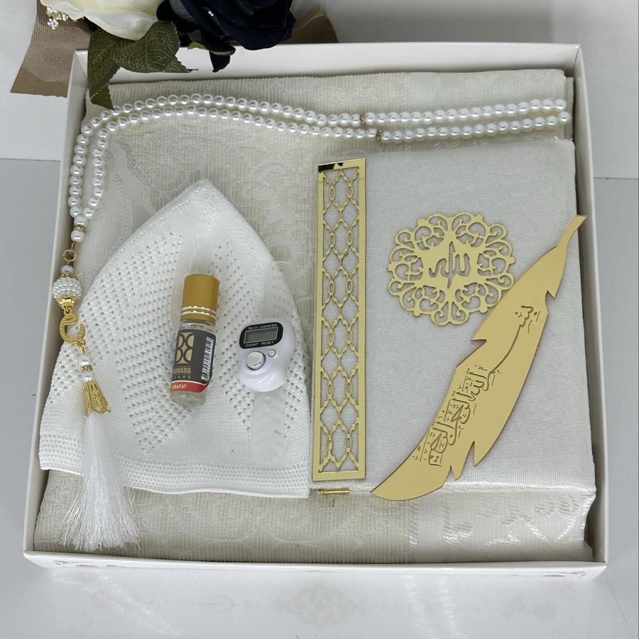 Ürün Açıklaması: Özel günlerde anlamlı bir hediye arayanlar için şık ve zarif bir seccade seti! Bu erkeklere özel hediyelik set, kaliteli malzemeler ve estetik detaylarla hazırlanmıştır. Hem ibadet hem de zarif bir sunum için idealdir. Set İçeriği: ✔️ 1 adet desenli tafta seccade ✔️ 1 adet kadife kaplı Yasin-i Şerif ✔️ 1 adet pamuklu namaz takkesi ✔️ 1 adet dijital zikirmatik ✔️ 1 adet kalıcı esans koku ✔️ 1 adet siyah inci görünümlü 99’luk tesbih ✔️ 1 adet altın yaldızlı kitap ayraç Bayram, mevlid, kandil veya özel günlerde anlamlı bir armağan arayanlar için şık kutusunda teslim edilir. Siparişinizi hemen verin, sevdiklerinize dualarla ulaşsın