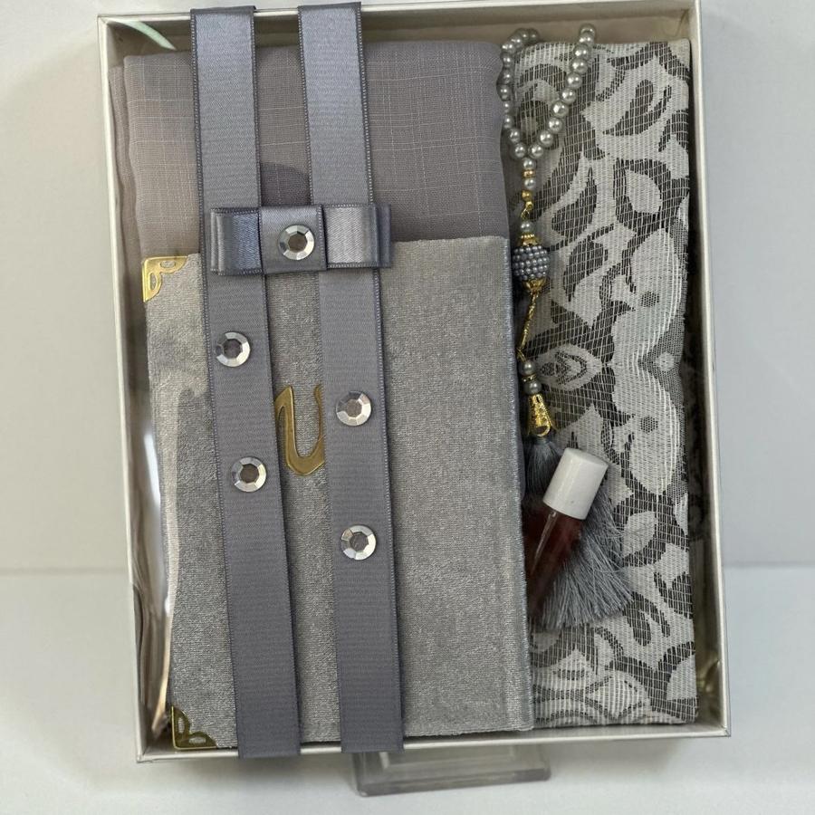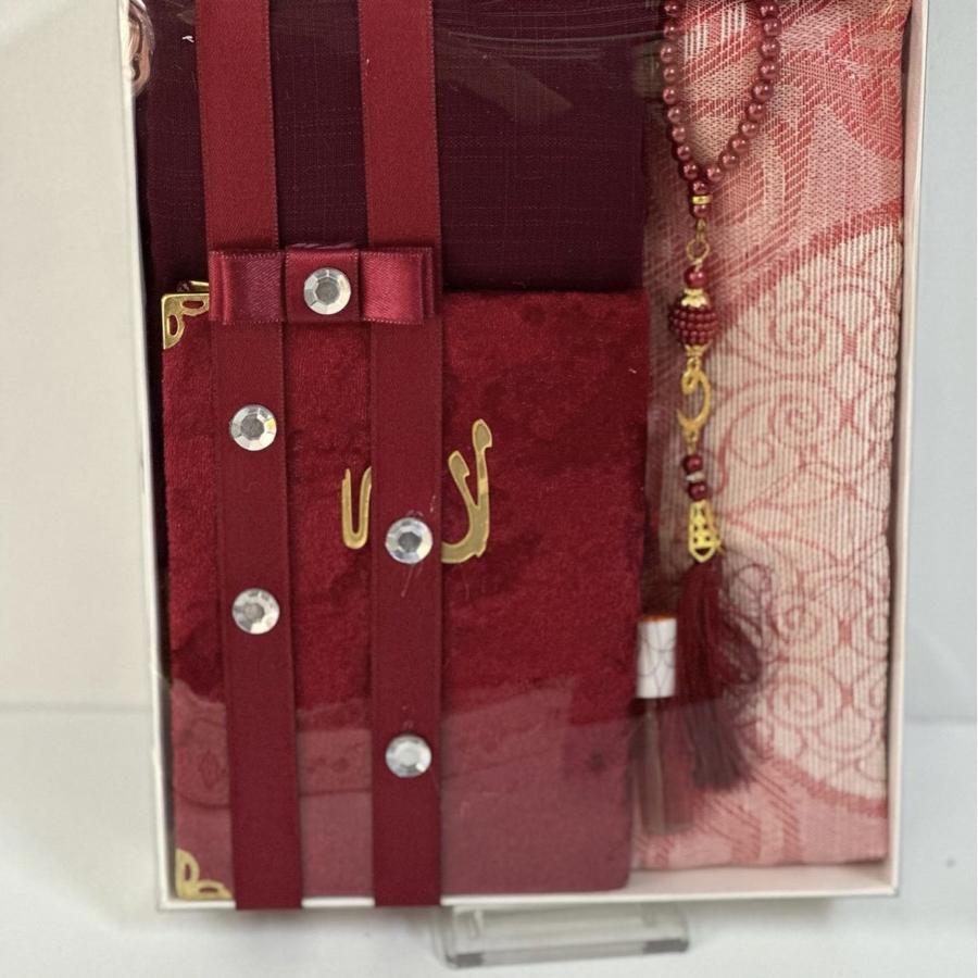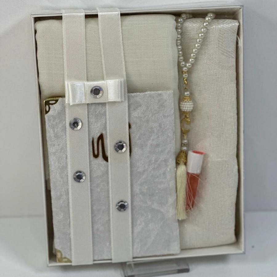 Haç umre çeyizlik seccade seti 1 adet seccade 1 adet Yasin şerif 1 adet fulamlı yazma 1 adet inci Tesbih 1 adet esans koku ürünler görselde görüldüğü gibi hediye paketinde gelir