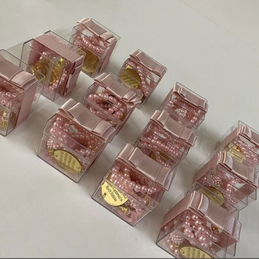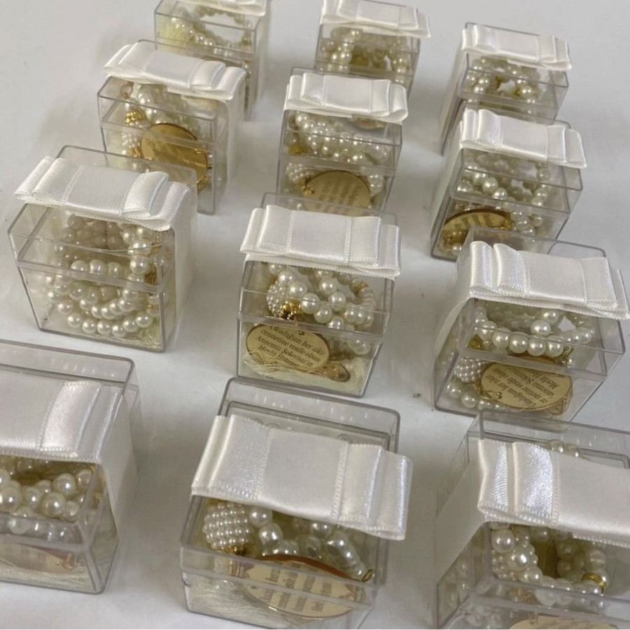 Hediye kutusu içerisinde inci Tesbih ürünler görselde görüldüğü gibi gelir