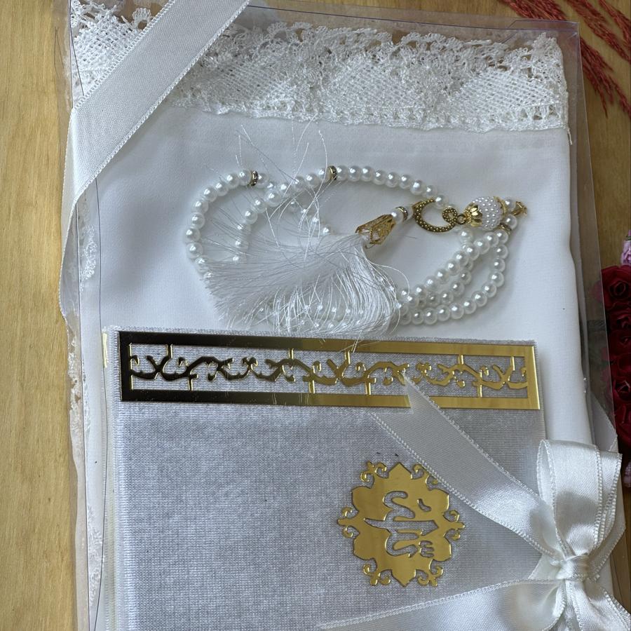 Hediyelik Çeyizlik Hac & Umre Seti Sevdiklerinize özel, zarif ve anlamlı bir hediye! ✨ Set İçeriği: ✅ 1 adet krep şifon şal (zarif dantel detaylı) ✅ 1 adet özel tasarım Yasin-i Şerif (lüks kaplamalı) ✅ 1 adet 99’lu inci tesbih (altın detaylı ve püsküllü) Özel kutusunda, şık tasarımıyla hac, umre ve çeyiz için mükemmel bir tercih! Şimdi sipariş verin, sevdiklerinizi mutlu edin.