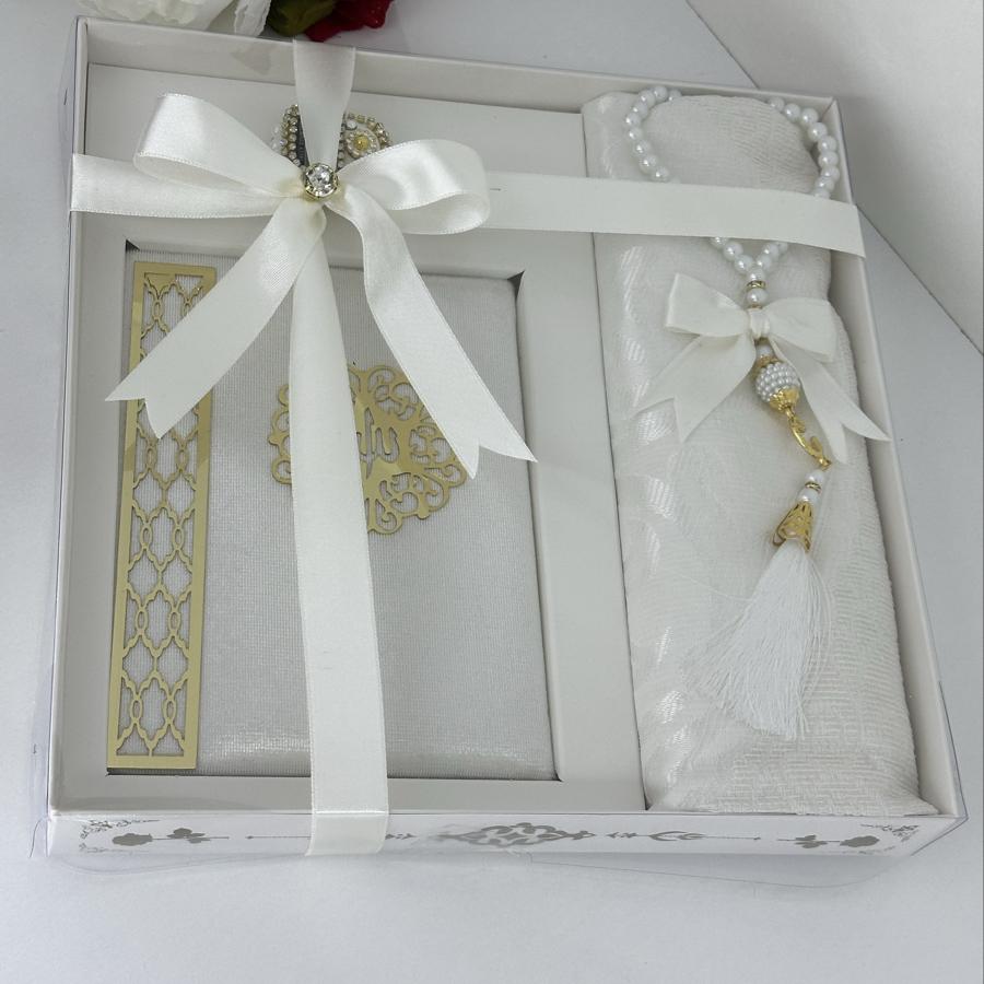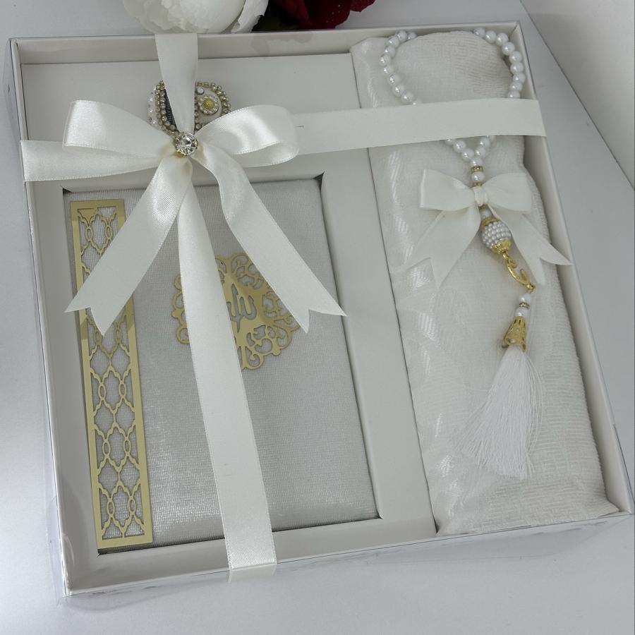 Set içeriği 1 adet seccade 1 adet Yasin şerif Türkçe Arapça 1 adet inci Tesbih 99 Lu 1 adet taşlı zikirmatik Ürün hediye kutusunda görselde görüldüğü gibi gelir