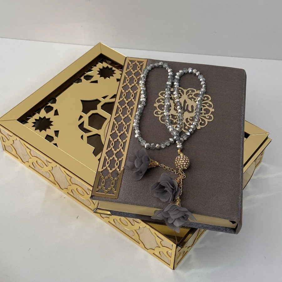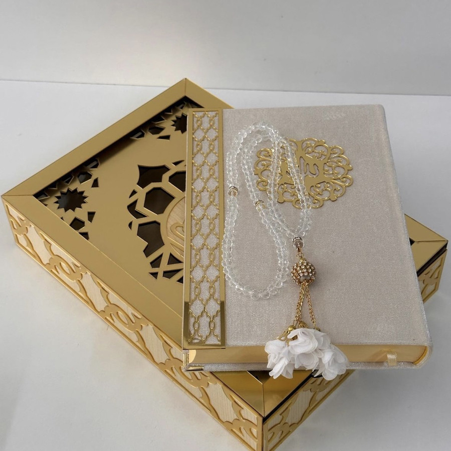 Kuranı Kerim hediye kutusunda kristal tesbih ürün rengi seçilebilir ürünler görselde görüldüğü gibi gelir