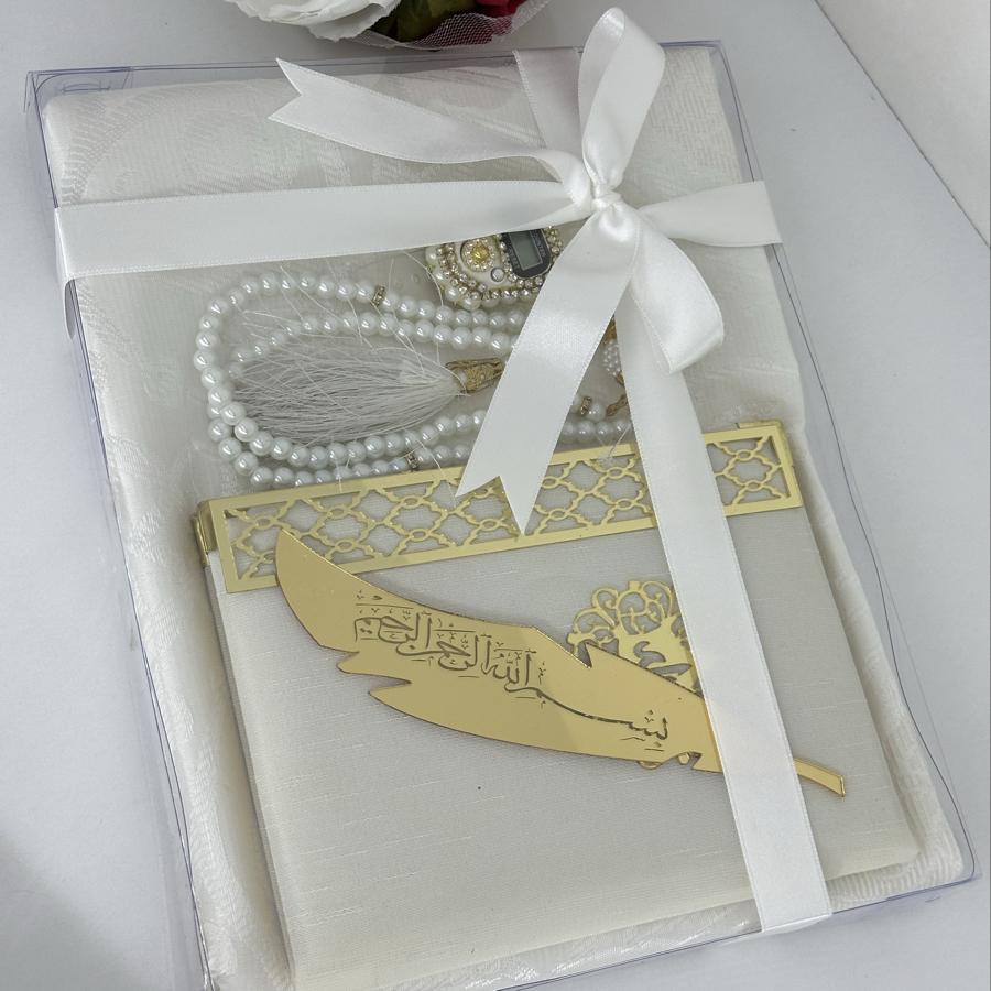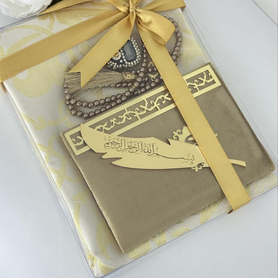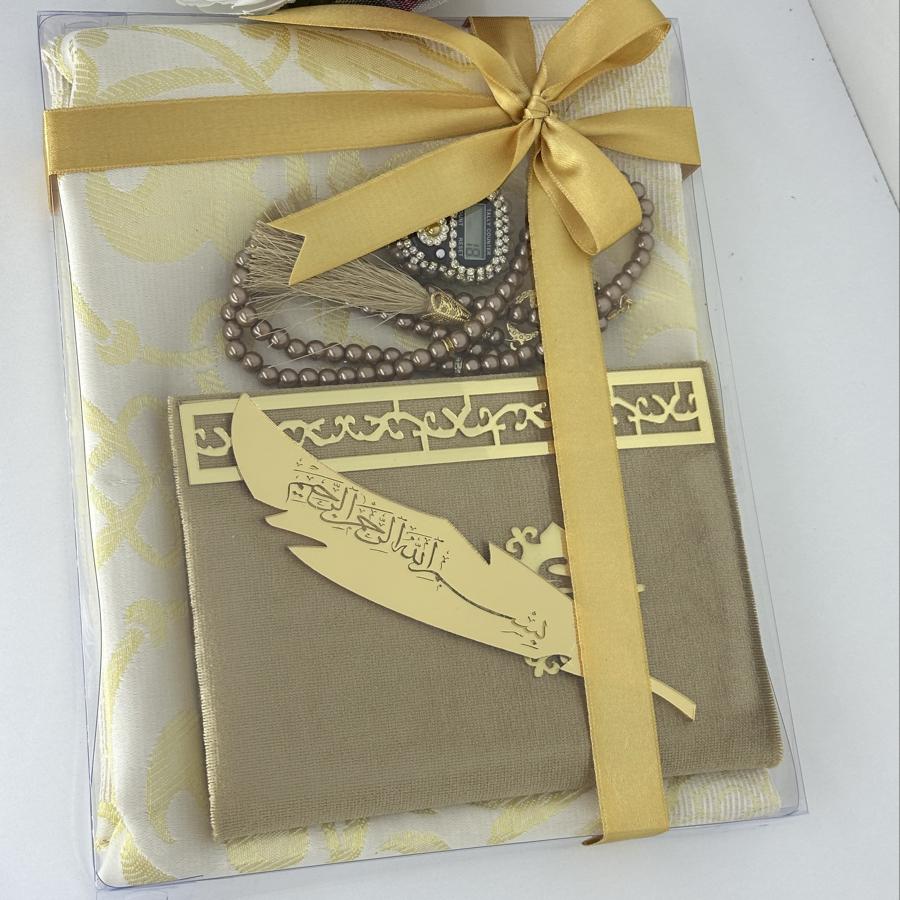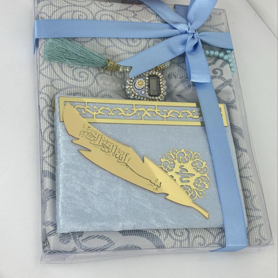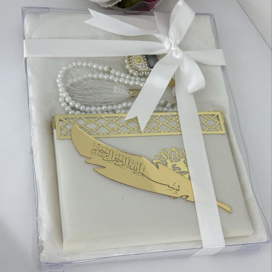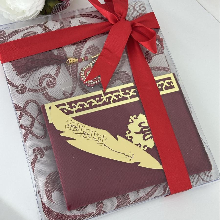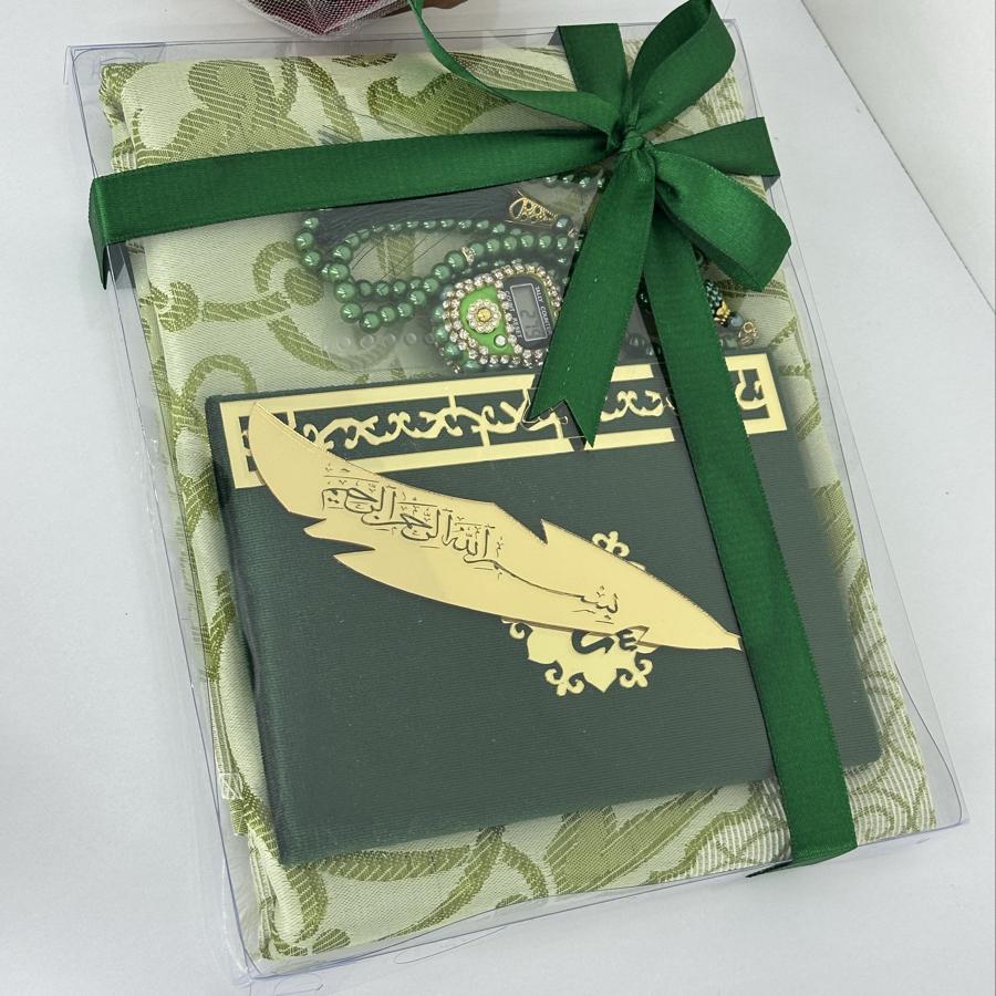 Özel Hediye Seti Sevdiklerinize manevi değeri yüksek, anlamlı ve zarif bir hediye arıyorsanız, bu set tam size göre! Set İçeriği: • 1 adet tafta seccade • 1 adet kadife kaplı Yasin-i Şerif • 1 adet 99’lu inci tesbih • 1 adet taşlı zikirmatik • 1 adet kitap ayracı Şık kutusu ve mor tonlarının asaletini taşıyan tasarımıyla; mevlüt, kandil, doğum günü, özel gün ve hatıra hediyesi olarak gönül rahatlığıyla tercih edebilirsiniz. Sipariş ve detaylı bilgi için bizimle iletişime geçebilirsiniz
