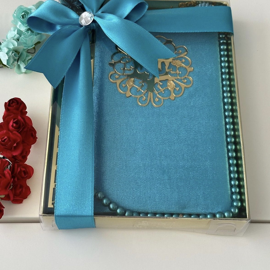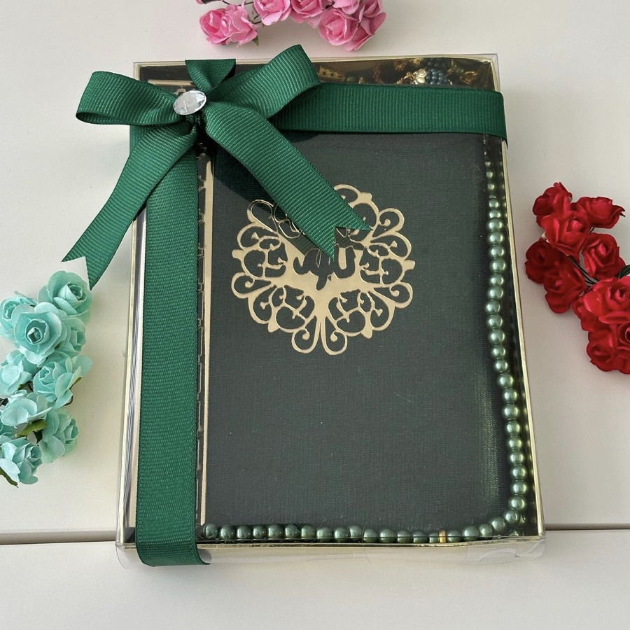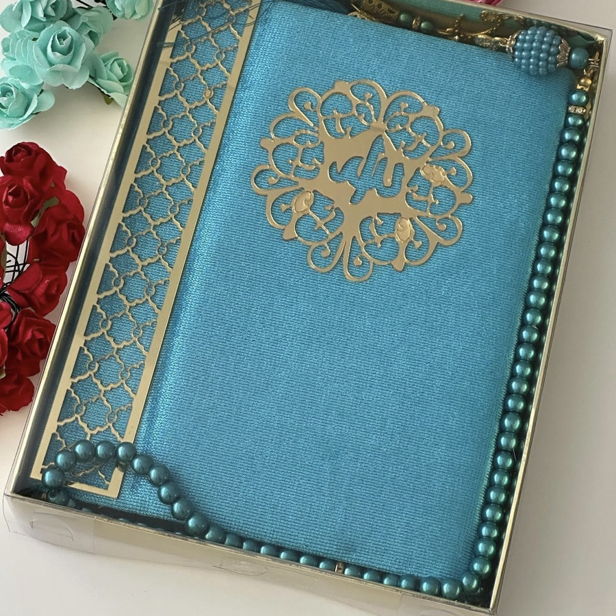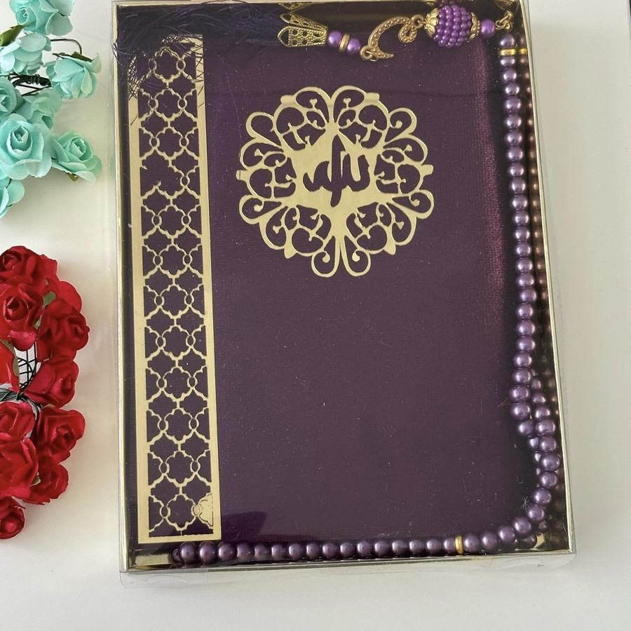 Tasarım kadife kaplı Yasin şerif ve inci Tesbih 99 hediye kutusunda ürünler görselde görüldüğü gibi gelir
