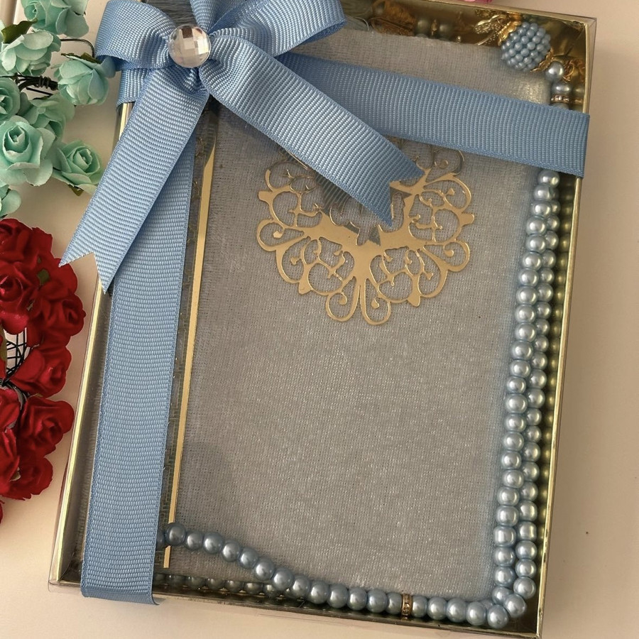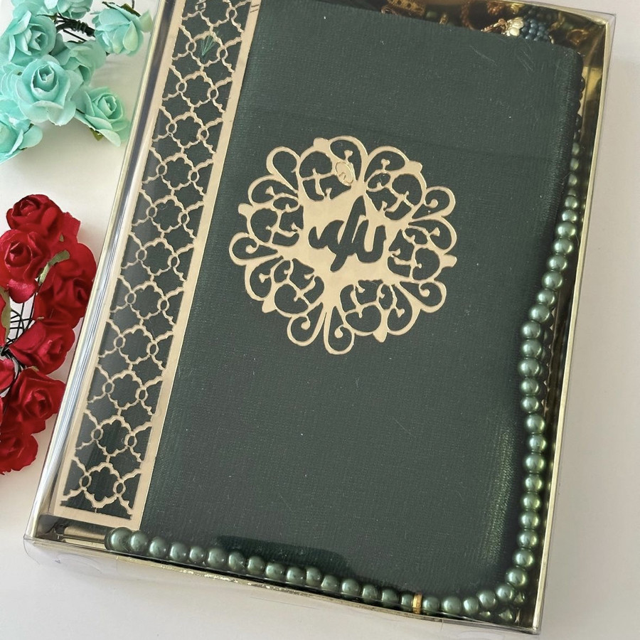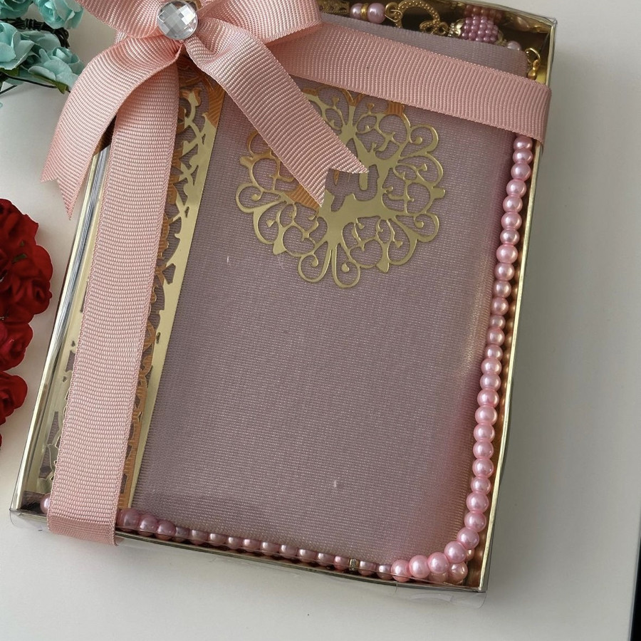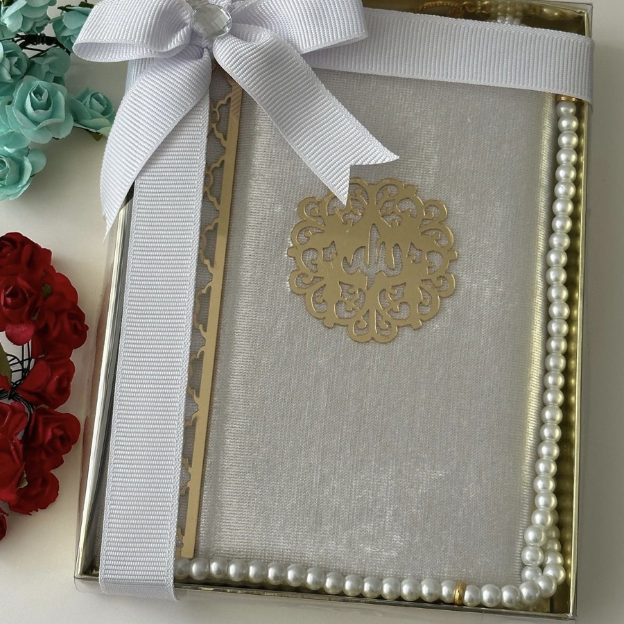 Tasarım kadife kaplı Yasin şerif ve inci Tesbih 99 hediye kutusunda ürünler görselde görüldüğü gibi gelir