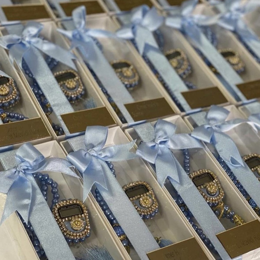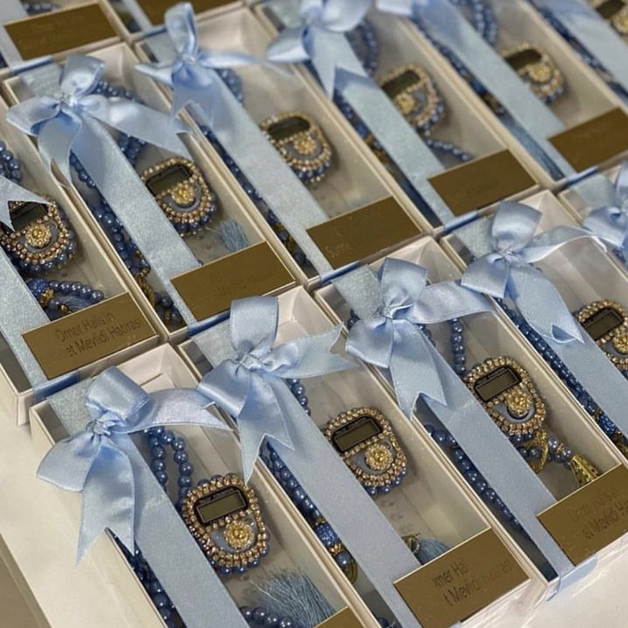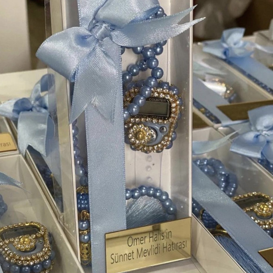 Taşlı Zikirmatik ve inci Tesbih hediye kutusunda ürünler görselde görüldüğü gibi gelir